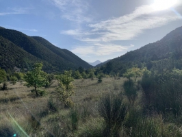 La montagne en forme de haut de soucoupe volante s’appelle le Griau. Elle semble être au fond de la vallée du Toulourenc, encadrée par les pentes du Mont Ventoux à droite et de la montagne de Bluye à sa gauche. Elle culmine à 1019m d’altitude et se situe sur la commune de Reilhanette (26).
