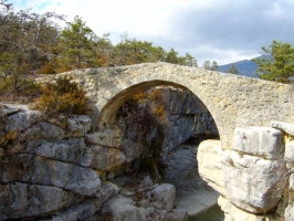 Cet élégant petit pont en dos d’âne jeté sur le torrent de Jabron fut édifié en 1787, bien que ses habitants le nomment « le petit pont romain ». Il permettait alors de gagner la vallée par un diverticule du chemin qui menait de Rougon à Trigance. Cette construction peut paraître tardive, mais il faut songer que cette communauté avait déjà la charge du pont dit « de Trigance », sur le chemin qui menait au village, qui fut édifié en pierre à une période antérieure. Son entretien était lourd.