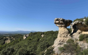 Proche de l’Ermitage et de la source de St-Gens, cette demoiselle coiffée s’est formée sur le chemin reliant les deux lieux saints. Sous le champ des cigales, observez cette cheminée sédimentaire dont le sommet est constitué d’une roche plus résistante à l’érosion que le pilier sédimentaire qui la maintient.  Respectez-là (elle est très fragile à cause de son âge et de sa constitution) et respectez le calme ambiant qui règne aux alentours.