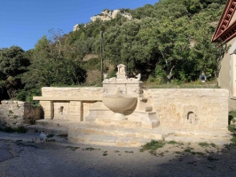 L’Ermitage, lieu ou St-Gens vivait, se situe à flanc de falaise sur une esplanade abritée du vent. On y trouve à l’entrée une fontaine aux sculptures du 18ème siècle, qui accueille les visiteurs. On y voit un loup et une vache, symboles de St-Gens, en référence à sa légende. Le départ de la réputée source se trouve au niveau d’un oratoire, un peu plus loin sur le chemin.