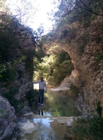Le ruisseau du Pibou prend sa source au col de Chaudebonne, à 4 km, au pied de la montagne d'Angèle. Ce ruisseau collecte les écoulements d'une vingtaine de ravins en près de 400 m de dénivelé ! Son régime est torrentiel, fortement lié aux précipitations. Les brèves montées en crue ont creusé dans les strates calcaires une succession de goulottes et de vasques. Dans sa partie aval, il est souvent à sec, car l'eau s'enfonce dans le karst, à proximité de son confluent avec l'Eygues.