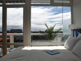 Entièrement décoré par l'architecte Vincent Duteurtre, l'Escale Quai George V rend hommage au patrimoine architectural reconstruit par Auguste Perret et à la dimension maritime du Havre. Situé au 5 ème et dernier étage, sa terrasse plein sud offre une vue plongeante sur le bassin du Commerce, et des perspectives vers le port, la quartier St François et ses restaurants, le centre reconstruit et le Volcan Scène Nationale. Entrée équipée d'une penderie-dressing avec table et fer à repasser, la kitchenette aux couleurs et aux graphisme du conteneur maritime offre tout le confort moderne: plaque induction, four, micro-ondes, lave-vaisselle, réfrigérateur avec compartiment congélateur, hotte aspirante, vaisselle complète, cafetière à dosettes. TV écran plat avec TNT et Bein sport, lecteur DVD par box. Lit 160 x 200 fait à l'arrivée, salle de douche avec sèche-cheveux et prise rasoir, linge fourni. Capacité 2 personnes.