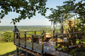 Vivez l'expérience insolite de dormir sous les étoiles, tout en étant protégé de l'humidité, du vent et des insectes.Profitez du panorama exceptionnel, oubliez votre quotidien... on vous garantit le dépaysement !Dans la Domostella, vous vivez au rythme de la nature, profitez du coucher de soleil sur la colline, puis de la voûte céleste bien au chaud dans votre lit douillet. Vous risquez d'être réveillé dès les premières lueurs du matin et par le chant des oiseaux... Vous prendrez alors votre petit déjeuner face au château de Turenne éclairé par les premiers rayons du soleil ou peut-être face à la mer de nuages, fréquente à l'aube dans la vallée.