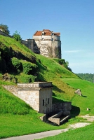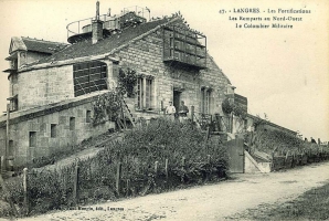 Construite sur un éperon rocheux, la tour saint Jean ou saint Gengoulph vient compléter et moderniser l'enceinte fortifiée de Langres. Contemporaine de la barbacane de Longe-Porte, cette tour doit son nom à la proximité de l'ancien prieuré Saint-Gengoulph aujourd'hui disparu. Edifiée vers 1537, c'est la dernière des quatre tours d'artillerie de la ville, commandée par le roi de France afin de protéger la frontière Est du royaume. Sa structure est plus simple que ses devancières et son originalité tient dans le fait qu'elle ne comporte aucune ouverture de tir en façade. Ce front aveugle forme un bouclier frontal demi cylindrique de 7,5 mètres d'épaisseur. A l'intérieur, l'unique salle voûtée comporte deux casemates de tir latérales qui servaient à flanquer les courtines. La puissance de feu de l'ouvrage était renforcée par la terrasse équipée d'embrasures. Le parapet de sa terrasse était percé sur la gauche et la droite pour placer les canons destinés à protéger les ouvrages défensifs voisins.En 1882, un pigeonnier militaire, au style néo-médiéval, fut aménagé sur la terrasse de la tour. Les pigeons voyageurs étaient utilisés comme moyen de communication entre les places fortes frontalières. Les messages étaient photographiés sur films spéciaux de 6 cm², agrandis et déchiffrés par projection. Ce moyen de transmission était d'une grande efficacité : en effet, un pigeon voyageur peut voler à la vitesse de 60 à 100 km /h et parcourir, par exemple le trajet Langres- Besançon en 80 minutes. Ce système a fonctionné jusqu'au début de la première guerre mondiale.Pour la petite histoire :En 1580, un inventaire d'artillerie nous apprend que cette tour était équipée : d'une pièce moyenne de campagne, de 2 fauconneaux sur affûts, de 2 arquebuses à croc.Mais en tout, ce sont plus de 130 armes à feu de tout calibre qui se trouvaient en permanence dans les ouvrages, sans compter l'artillerie entreposée dans les arsenaux. En 1567, on y trouve 16 canons, 23 arquebuses, plus de 6 tonnes de poudre et un millier de boulets.Ces armes n'ont pas été conservées ; dès la fin du XVIIe siècle, le pouvoir royal désarme la ville qui n'est plus sur les frontières. Au XVIIIe siècle, seules subsisteront des armes portatives et quelques canons périmés destinés à assurer la défense policière et non plus militaire de la cité.