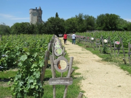 1 km de parcours à travers un village qui a tenu une place importante durant la guerre de 100 ans dont il subsiste un donjon qui a fière allure, des habitats troglodytiques qui donnent un charme indéniable, un conservatoire de vigne car nous sommes au cœur d’une route du vignoble et le Poï’z Zalambic qui vous attend bien niché non loin d’une vue à couper le souffle !
