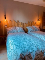 Gîte de plain-pied, au calme, dans un espace verdoyant. Pièce détente avec jacuzzi privatif. Deux chambres. Décoration moderne.