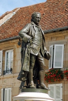 Langres, ville berceau du philosophe Denis Diderot Le Langrois le plus illustre est très certainement Denis Diderot, né en 1713 au n°9 de la place qui porte désormais son nom. Fils d’un maître coutelier renommé, il fit ses études au collège des Jésuites. Diderot grandit dans une famille de sept enfants, parmi lesquels Didier, futur chanoine ; Angélique, religieuse aux Ursulines et Denise, dite «sœurette», qui l’aidera à garder le lien avec le père et surtout avec le frère.Son père aurait souhaité qu’il rentre dans les ordres mais Denis ne suivra pas cette voie contrairement à son frère. À l’âge de 15 ans, il refuse la succession de son père et le siège canonial de son oncle, et part poursuivre ses études à Paris au lycée Louis-le-Grand. Lorsqu’il se détourne des ordres, son père lui coupe les vivres. Il est écrivain public et pratique différents métiers durant une quinzaine d’années. Pour vivre, il effectue des traductions de l’anglais vers le français. Auteur éclectique et prolixe, il va s'aventurer dans tous les genres : philosophie, roman, théâtre, critique d'art. Fustigeant l'intolérance et rejetant l'autorité de la morale traditionnelle, il luttera - avec d'autres - pour le triomphe de la Raison et l'universalité du bonheur humain.Son oeuvre magistrale et étonnamment moderne demeure l’Encyclopédie, véritable monument et victoire du savoir humain dont il sera maître d’oeuvre acharné durant plus de deux décennies (entre 1746 et 1766). Diderot et sa ville «Pour moi, je suis de mon pays» disait-il. Le Pays de Langres s’honore d’avoir vu naître cet homme qui prit place, avec Voltaire et Rousseau, parmi les figures emblématiques du Siècle des Lumières. Diderot ne reviendra dans sa ville natale qu’à 5 reprises. Trop petite pour lui, son ambition et son destin sont ailleurs. Auteur éclectique et prolixe, il va s’aventurer dans tous les genres : philosophie, roman, théâtre, critique d’art. Fustigeant l’intolérance, rejetant l’autorité de la morale traditionnelle, condamnant la torture, il luttera - avec d’autres - pour le triomphe de la raison et l’universalité du bonheur humain. Coeur ardent et esprit novateur, ses remarques sur Langres et les Langrois sont vives et contradictoires. Si, depuis la promenade de Blanchefontaine, ses yeux «errent sur le plus beau paysage du monde», il dit de ses compatriotes qu’ils « ont de l’esprit, de l’éducation, de la gaieté, de la vivacité et le parler traînant, ils ont des livres, ils lisent et ne produisent rien »… La place DiderotL'ancienne place Chambeau s'est longtemps adossée à la muraille du Bas-Empire. Avant le percement de l'actuelle rue Leclerc en 1612, l'ancien cardo gallo-romain – axe nord-sud ; actuelle rue Diderot – s'interrompait à cet endroit.En 1884, le centenaire de sa mort fut l'occasion de rebaptiser la place à son nom et de lui ériger une statue. Due à Frédéric Auguste Bartholdi, elle repose sur un socle énumérant les principaux collaborateurs du projet encyclopédique.DIDEROT en quelques dates :5 octobre 1713 : Naissance dans la maison de la place Chambeau, n° 9 de l’actuelle place Diderot. 1723 – 1728 : Études au collège des Jésuites. Denis est un brillant élève. 1728 : Diderot quitte Langres pour Paris où il poursuit ses études et s’y installe définitivement. Diderot reste très attaché à sa famille et à son pays natal, qui exerce sur lui une mystérieuse attraction. Il y revient plusieurs fois, notamment en 1759, après la mort de son père. En 1770, il séjourne à Bourbonne-les-Bains.1781 : Il offre à la Ville de Langres son buste en bronze, modelé par Houdon. 31 juillet 1784 : Mort de Diderot.DIDEROT, en quelques titres- L’Encyclopédie- Les Lettres à Sophie Volland- Les Pensées Philosophiques- La Lettre sur les Aveugles- Pensées sur l’interprétation de la nature- La Religieuse- Essais sur la peinture et Salons- Le Neveu de Rameau- Le Paradoxe sur le Comédien- Jacques le Fataliste