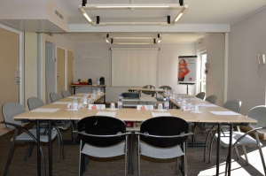 A 5mn de la gare et du centre ville historique d'Angoulême, ville de la Bande Dessinée, notre hôtel dispose de 62 chambres silencieuses tout confort (dont 1 familiale et 4 communicantes) avec wifi gratuit dans tout l'hôtel, un bar 24h/24, de la petite restauration 24h/24, un restaurant sur place à 50m et plusieurs restaurants proches ainsi qu'un grand parking gratuit.Animaux acceptés avec supplément.3 salles de réunion (24 personnes).