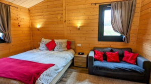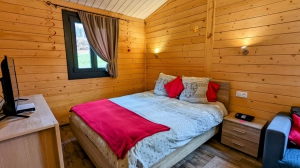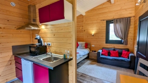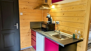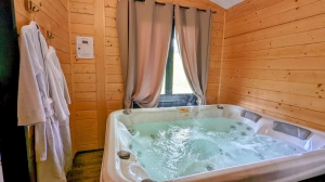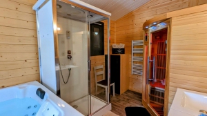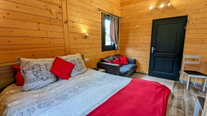 Au calme, en pleine nature, dans un ensemble comprenant 3 chalets, le chalet " Griotte" vous accueille pour un séjour détente et bien-être : l'hébergement comprend : une kitchenette, une grande chambre avec 1 lit de 160 cm, TV écran plat, une grande pièce/salle d'eau avec Spa, sauna infra-rouge et douche. 1 WC indépendant. Grande terrasse avec salon de jardin offrant une superbe vue sur la nature environnante. Animaux admis.Petit-déjeuner fait maison disponible en option : croissants, pains au chocolat, petits pains, yaourt fermier, compote, confiture artisanale et jus de fruits.Pour un moment de détente, profitez de massages individuels ou en duo réalisés par une massothérapeute, sur réservation en ligne.Nous proposons également des repas à savourer sur place : lasagnes, gratin dauphinois, pierrade, charcuterie, raclette ou Mont d'Or. Tous les repas sont accompagnés de salade et d'un dessert au choix. Réservation par téléphone auprès de la propriétaire, au minimum 72h à l'avance.Tout compris : draps, ménage, linge de toilette, peignoirs, chauffage et électricité, Spa et sauna.