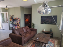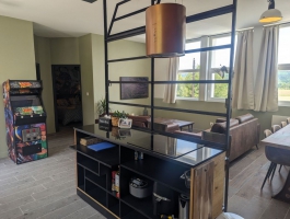 Gite situé à l'étage d'une microbrasserie artisanale. Composé de 3 chambres avec chacune un lit de 160, d'une cuisine ouverte sur la salle à manger et d'un salon. Vous serez accueilli par Caroline et Gaëtan.Borne d'arcade dans la salle à manger. Terrain de pétanque, jeu de fléchette, table de ping-pong, badminton et prêt de vélo.Le gîte est mitoyen à un logement résidentiel.Proximité Route Nationale 67Caution supplémentaire demandée pour le prêt de vélos