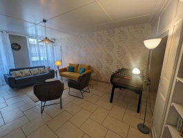 Au rez-de-chaussée, entrée, cuisine ouverte sur la salle à manger, grand salon, espace détente.A l'étage, 2 chambres toutes deux équipées d'une salle d'eau, l'une avec un lit en 140 et l'autre disposant de 2 lits de 90.Linge de lit, de toilette et de maison sont fournis. Ménage de fin de séjour compris dans le tarif. Lit Bébé et chaise haute enfant sur demande gratuit.Possibilité d'un couchage supplémentaire de 2 places (canapé convertible dans salon) moyennant un supplément de 10 € par personne et par jour.Chauffage compris dans le tarif du 01.10 au 15.04.Places de stationnement publiques proche du gîte.
