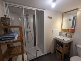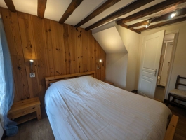 Le gîte se compose au rez-de-chaussée d'une grande salle à manger donnant accès à la chambre PMR avec un lit de 140. La salle d'eau est aménagée avec une barre de transfert dans la douche et dans le toilette. Un fauteuil handicapé est aussi présent la salle d'eau.La cuisine de taille modeste est complétée par une cuisine de professionnelle mise à disposition chez le propriétaire.A l'étage, une suite de trois chambres composée comme suit : la première chambre avec un lit de 140 et salle d'eau et toilette privatifs, suivi par une chambre avec 2 lits en 90 puis la dernière chambre avec un lit de 140.Une salle d'eau et toilette séparé pour ces deux chambres. Si vous êtes plus nombreux, deux logements mitoyens de 3 et 4 personnes peuvent être ajouter en complément. Le prix du logement pour 3 personnes est de 80 € la nuit et le logement pour 4 personnes 100 € la nuit. Pour tout logement supplémentaire au-delà de 8 personnes, vous devez obligatoirement contacter le service réservation car il y a un supplément.Centre équestre sur place. Parking. Accueil chevaux (boxe) : 15 €.