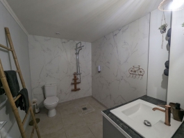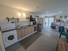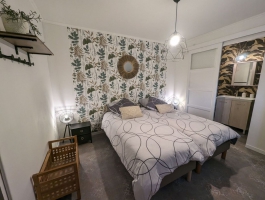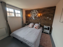 Il se compose d'une grande pièce à vivre donnant accès sur une chambre avec un lit de 160 et sur une salle d'eau avec toilettes. La seconde chambre se situe dans l'entrée, avec deux lits de 80 pouvant se rapprocher pour ne former plus qu'un lit de 160. Une salle d'eau est également présente dans la chambre avec un toilette.Vous pourrez garer votre voiture sous le hangar se situant à côté du gîte.Le logement est de plain pied et la salle de bain à un accès PMR.