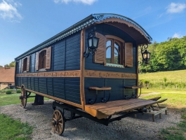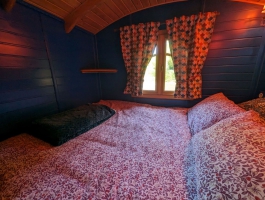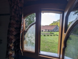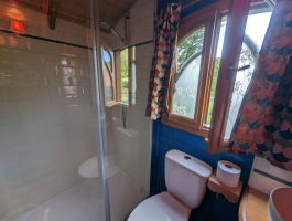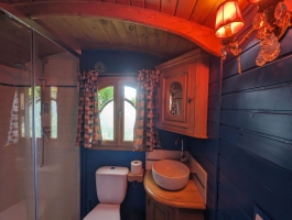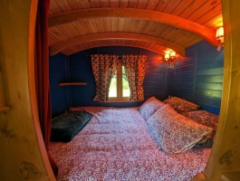 La roulotte est composée d'une alcôve avec un lit en 140, d'une salle d'eau avec toilette privative à l'intérieur de la roulotte. Le coin repas est équipé d'une plaque à induction un foyer, pour profiter en toute intimité de votre séjour.Les lits sont faits à l'arrivée, les draps, le linge de maison et le linge de toilette ainsi que le forfait ménage sont inclus dans le tarif. Attention, la roulotte doit être laissée dans l'état dans lequel vous l'avez trouvée.