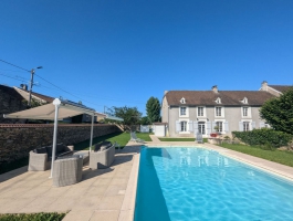 Au rez-de-chaussée, le logement se compose d'une grande cuisine, entièrement équipée avec télé écran plat, réfrigérateur américain, cheminée, grande table pouvant recevoir au moins 8 personnes.Salle de bain - baignoire et douche, lavabo double vasque.WC séparés.Salon télé, avec boiseries chêne, comprenant canapé table basse et 2 fauteuils.Grande salle à manger table monastère 10 personnes, avec poêle insert bois, sol dalles de pierre d'origine.Salon bibliothèque, échiquier et livres à disposition.A l'étage, palier avec lit d'appoint ancien (1,20m), couloir desservant 3 grandes chambres (moustiquaires aux fenetre )dont une avec 1 lit de 140 et 1 lit de 90. Une chambre avec 1 lit en 140. Une chambre avec télé, lit 160X200 donnant coté parc, au bout du couloir : WC plus cabine de douche.Lit parapluie et lit bébé avec chaise haute, baignoire pour bébé.Grande terrasse arrière donnant sur parc. Piscine 10m sur 5, avec grande terrasse, salon d'été, store double pente éclairé) chauffée de mai à octobre. Très grande cour en entrée, garage ,table de ping pong (possible garage motos ).Borne de recharge pour voiture electrique Arbres fruitiers.Habitation secondaire de 2 pièces sans toilettes, avec lits superposés pour adolescent, accès à toute la propriété sans autres locatairesPossibilité télétravail pendant votre séjour( internet haut debit dans toute la maison)Autres remarquesDemandons de bien vouloir respecter cette demeure comme si elle était à vous, et de respecter le voisinage. Merci de bien vouloir laisser les lieux dans l'état ou vous les avez trouvés en arrivant. Merci de ne pas utiliser le matériel se trouvant dans l'écurie. Nous vous confions notre bien merci d'en prendre soinEn cas de réservation pour les week end le départ peut se faire en fin d'après midi pour profiter pleinement de la piscine.Les animaux sont acceptés mais avec une restriction d'un animal pendant le séjour.il est formellement interdit de donner du pain aux anessses