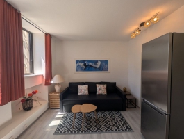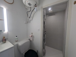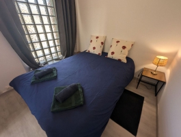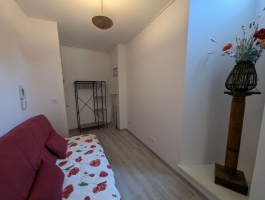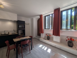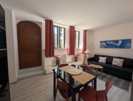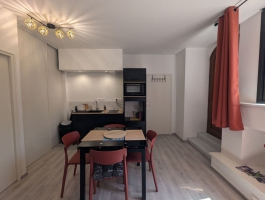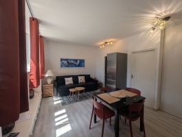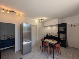 Appartement de plain pied, avec une entrée, une cuisine aménagée, une salle d'eau avec toilettes et une chambre avec un lit en 140 cm. Un couchage d'appoint convertible se trouve dans le séjour.