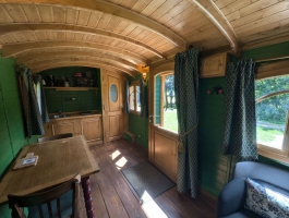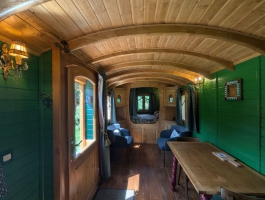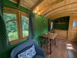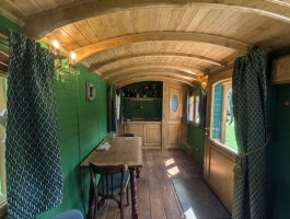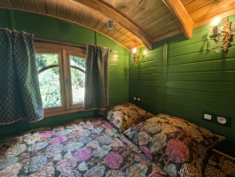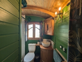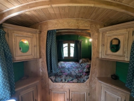 La roulotte est composée d'une alcôve avec un lit en 140, d'une salle d'eau avec toilette privative à l'intérieur de la roulotte. Le coin repas est équipé d'une plaque à induction un foyer, pour profiter en toute intimité de votre séjour.Les lits sont faits à l'arrivée, les draps, le linge de maison et le linge de toilette ainsi que le forfait ménage sont inclus dans le tarif. Attention, la roulotte doit être laissée dans l'état dans lequel vous l'avez trouvée.