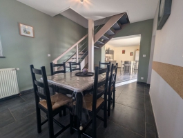 Rdc : cuisine/salle à manger, salle à manger, salon, 1 chambre (2 lits jumeaux 1 place 90x200,) s. d'eau et WC. 1er étage : 2 chambres (2 lits 2 places en 160), salle de bains (baignoire et douche) et WC. Chauf. central inclus. Lit bébé. Garage. Ménage inclus (80€). Charges: 8 kWh/jour d’électricité Offert (relevé de compteur à l’arrivée et au départ). Le surplus est à régler au propriétaire : facturation au réel selon consommation (relevé au compteur)