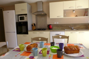 Gîte totalement indépendant en rez-de-chaussée.Cuisine/salle à manger3 chambres réparties comme suis : 2 chambres avec un lit de 140 cm chacune et 1 chambre avec 1 lit de 120 et 1 lit de 90 cm.Salle de bains et toilettes. Garage. Forfait ménage : 50 euros. Lits faits à l'arrivée. Loc. linge de toilette : 5 euros/personne.
