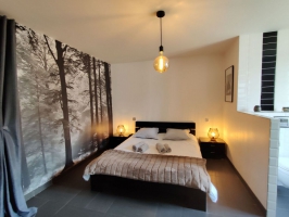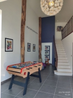 Rdc :Salon/salle à manger/cuisine, 1 chambre (1 lit 2 pl. en 160) avec salle d'eau et WC privés, WC. Etage : 2 chambres (2 lits 2 pl. en 160) avec salles d'eau privées, 1 suite parentale (1 lit 2 pl./2 lits 1 pl.), salle de bains (baignoire et douche) et WC. Ménage inclus. Linge de toilette : Fournis. Draps fournis. Torchons : fournis.. Terrasse avec table de jardin et chaises pour 10 personnes et transats (6). Parking.Sauna 7 places assises ou 4 couchées (draps de bains fournis).Babyfoot.