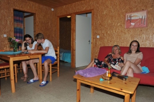 Bar - restaurant ouvert 7jours/7 midi et soir avec possibilité de petits-déjeuners sur réservation; dépôt de pain et viennoiseries. Possibilité de location d'une salle de réunion. Supplément par animal par jour : 4 €. Draps lit 2 personnes : 12 €. Draps lit 1 personne : 8 €. Ménage fin de séjour : 50 €.Le chalet se compose de 3 pièces : kitchenette/sejour avec un canapé convertible ou 2 lits gigognes, 1 chambre avec un grand lit,1 chambre avec 2 lits simples, salle de bain, WC. Terrasse, salon de jardin. Parking à proximité. Pas de télévision dans le chalet.