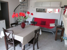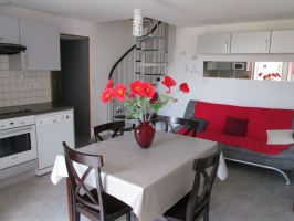 Au rez de chaussée, une cuisine équipée avec coin salon, TV et lecteur DVD, une chambre ( 1 lit 2 pers.140 cm), une salle deau, WC.A létage, par un escalier pentu et étroit, une chambre (2 lits 1 pers. 90 cm).Chauffage électrique.Parking privé clos.