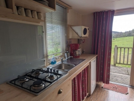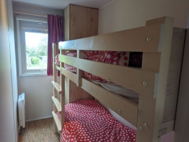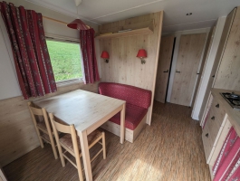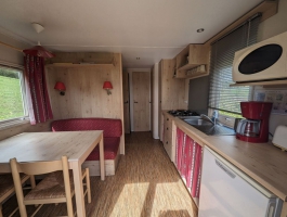 Roulotte de 23m² avec terrasse et salon de jardin, une cuisine aménagée, 1 chambre (1lit 2 pers.140cm) et 1 chambre pour 2 enfants (2 lits superposés 80cm). 1 salle d'eau et 1 WC. Lave linge commun dans le bloc sanitaire du camping. Il n'y a pas de classement en clé car c'est une qualification "insolite"