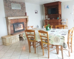 Cuisine, salle à manger/salon, 6 couchages avec deux chambres (2 lits doubles) et un clic-clac dans la salle. Douche, wc séparés. Garage. Espace jardin et pelouse clôturé (possibilité d’y poser une tente). Deux terrasses avec barbecue en pierres, salons de jardin.Lave-vaisselle, lave-linge, tv et lecteur dvd, parking, wifi.Matériel de bébé à disposition sur demande.Intérieur non-fumeur.Comme nous travaillons, il est préférable de vous assurer (surtout en semaine) que les horaires conviennent à tous. Nous ferons du mieux possible pour répondre à votre demande et être présents à votre arrivée comme à votre départ.Chauffage au bois et radiateur électrique.
