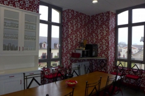 Réservez votre chambre de charme au gîte de groupe « la Maison des Officiers » avec son parc arboré et fleuri dans lancienne demeure XIXème siècle du Haras National.5 chambres (dont une pour personne à mobilité réduite) pour 2 personnes avec salle de bain ou salle deau et WC privatifs, TV, 3 chambres pour 3 personnes avec salle de bain et WC privatifs, TV, une cuisine équipée, un salon avec TV et table de jeux, ascenseur. Service de draps et serviettes, Petit déjeuner en plus