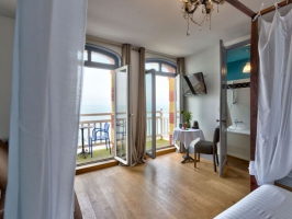 Situé sur le front de mer à Etretat, l’Hôtel le Rayon Vert, demeure de charme du 19ème siècle bénéficie d’un emplacement exceptionnel, au milieu de la baie, les pieds dans l’eau….Entièrement rénové, c’est dans un cadre très cosy, aux couleurs chaleureuses et aux matériaux nobles, dans un souci de confort et de chaleur que cet hôtel de charme vous invite au cocooning face à la mer.Vous bénéficierez d’une vue exceptionnelle sur la falaise d’aval et sa célèbre aiguille ainsi que sur la falaise d’amont et sa chapelle des marins.L’Hôtel Le Rayon Vert c’est 18 chambres toutes équipées dont 11 ont une vue sur la mer. Remontez la cascade de lumière au cœur de l’escalier, atteignez le troisième et dernier étage pour voir la mer de plus haut et prélassez-vous dans une baignoire balnéo-jacuzzi…Offre Entreprises :Pour les déplacements professionnels de vos collaborateurs, découvrez leur nouvelle offre "Soirée étape".Cette offre inclut : - une nuit en chambre double avec vue village- un menu entrée & plat ou plat & dessert (hors boissons) au restaurant de l'hôtel- un petit-déjeuner buffet ou room serviceCette offre est valable du lundi au jeudi inclus, toute l'année hors vacances scolaires et ponts, sous réserve de disponibilité.