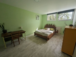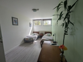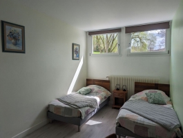 Vous aurez accès au premier étage complet, avec quatre chambres dont deux avec salle d'eau et toilettes, pour huit personnes, et une chambre familiale équipée d'une salle d'eau et d'un toilette pour quatre personnes. La cuisine et la salle à manger avec un accès à la terrasse sont sur le même niveau. Vous aurez accès à une salle de sport, une salle commune pour une quinzaine de personnes avec cuisine équipée. Espace détente/salon TV. Terrain de pétanque. Les propriétaires pourront également vous proposer un gîte pour 2 personnes. Pour vos réceptions, vous pourrez également louer une salle pour 120 où 80 convives. Tarifs sur demande.