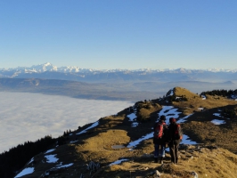 Découvrez un panorama à 360° avec vue sur les Alpes et le Jura, depuis la table d'orientation située au Crêt de la Goutte (1621 m), sommet du Crêt d'Eau.Accès pédestre au crêt de la Goutte depuis la station Menthières ou le parking de la Charnaz. Randonnée en boucle possible pour une durée de 4h et 8km.