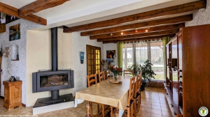 Dans un quartier résidentiel, maison indépendante comprenant : au rez-de-chaussée : cuisine toute équipée, ouverte sur salle à manger/salon avec poêle à bois, 1 salle de bain avec douche et baignoire, WC indépendant. Accès au garage : lave-linge et congélateur à disposition. A l'étage : 1 salon en mezzanine, avec TV grand écran, wifi, bibliothèque, 2 chambres avec chacune 1 lit de 140 X 190 cm + 1 chambre mansardée, avec 1 lit de 140 X 190 cm, idéal pour un enfant. Grande terrasse à l'arrière (accès depuis la cuisine), avec salon de jardin, barbecue à charbon, transats. Parking privatif + 1 abri pour une voiture. Balançoire. Grand jardin (partiellement clos, pas de portail) de 1500 m². Chaise haute et lit parapluie sur demande.Charges et options :Draps et linge de toilette compris. Bois fourni.Forfait ménage : 50 €Electricité en supplément (au delà de 8kwh/jour), sur relevé de compteur