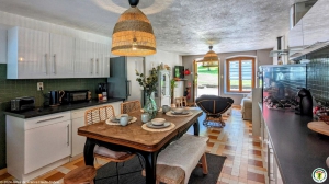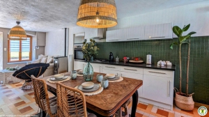 Le gîte "Au Moulin de Bougnon", vous propose :Au rez-de-chaussée : cuisine équipée ouverte sur un petit salon avec TV et WIFI et enceinte connectée avec accès direct à la terrasse, salle à manger, 1 buanderie avec lave-linge et sèche-linge, 1 WC avec douche.A l'étage : 1 salon avec TV, baby-foot, bibliothèque et nombreux jeux de sociétés, 1 salle d'eau avec douche et WC, 1 chambre avec 1 lit de 180X200 cm + 1 lit de 80X190 cm et 1 chambre avec 2 lits de 90X200 cm (accès indépendant ou possibilité de faire communiquer ces 2 chambres), 1 chambre avec 1 lit de 140X190 cm, 1 chambre avec 1 lit de 160X200 cm, 1 salle de bain avec baignoire et table à langer, 1 WC indépendant. Chauffage par pompe à chaleur. Equipements bébé sur demande (lit parapluie, chaise haute, baignoire, poussette). Abri pour camping-cars. Parking privé sur place. Terrain entièrement clos. Belle pièce de réception pouvant accueillir jusqu'à 60 personnes ( du 01/03 au 30/10, tarifs sur demande auprès de la propriétaire).