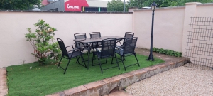 Appartement neuf lumineux tout confort, plain pied, à 120m des thermes et des commerces, au calme, climatisé, terrasse aménagée, parking et garage privé, espace vert privatif, petits chiens acceptés sans supplément.2 chambres.