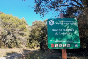 Le Petit Luberon possède une grande richesse ornithologique liée à sa position géographique à mi-chemin entre mer et montagnes, et à la présence de milieux naturels variés ; pelouses pastorales, garrigues, forêts, canyons et cirques rocheux. Ici, se trouve la limite de la zone protégée par arrêté préfectoral de protection de biotope (APPB), mis en place en 1990. Afin de préserver la tranquillité des rapaces, la pratique de l’escalade, du slackline et des sports aériens (base-jump, parapente, deltaplane, ULM...), ainsi que la chasse photographique animalière et le survol en drone, sont strictement interdits. En complément, une zone de protection spéciale des oiseaux (ZPS) Natura 2000 Massif du Petit Luberon, définie par arrêté ministériel, vise la conservation des oiseaux sauvages. Des efforts particuliers de gestion sont mis en place afin de préserver la qualité des écosystèmes et leur remarquable biodiversité. En chemin, merci de rester le plus discret possible afin de préserver la quiétude des rapaces et oiseaux qui nichent et vivent sur le massif.