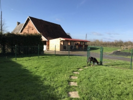 Située sur la commune de Le Dézert, maison indépendante, située à l'intérieur d'une propriété équestre, emplacement de parking privé.Un petit jardin clos entoure la petite maison, terrasse avec salon de jardin, barbecue, jeux...Au rez-de-chaussée, pièce de vie avec cheminée et poêle à bois, coin à manger et coin salon avec canapé convertible, une cuisine, une salle de bains (douche, lavabo, wc) et une chambre avec un lit double.A l'étage, en mezzanine, une chambre avec 3 lits individuels et cabinet de toilette (lavabo-wc).Animaux bienvenus.
