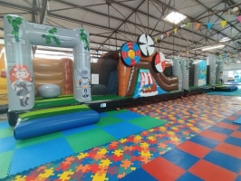 Parc de loisirs couvert pour enfants jusqu'à 13 ans. Structures gonflables : parcours, toboggan, Badaboum, city stade, espace motricité-découverte pour les tout petits, trampolines, mur d'escalade, bornes arcade en libre accès...structure tubulaires, piscine à balles ; activités à jetons : Air Hockey, baby-foot, karting, bouées tamponneuses, tape taupe, grapin à jouets