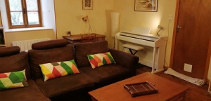 Vous trouverez au rez-de-chaussée une grande cuisine, un salon, un WC et un garage. A l'étage, une salle de bain/WC et 3 chambres. 1 lit en 140 cm, 2 lits superposés en 90 cm et 1 très grand lit pour 2 personnes.La cuisine est parfaitement équipée. Au salon, vous trouverez un piano électrique, une télé, un lecteur de DVD, un lecteur de CD et un tuner.Le logement est équipé de la fibre.Dans le garage : machine à laver le linge, salon de jardin, barbecue, et réserve de bois pour l'insert.