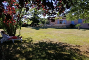 Sur les hauteurs du village, maison récente de plain-pied et non mitoyenne avec grand jardin clôturé de 3000 m² à 6km du sentier de randonnée pédestre de la ViaGarona (chemin de Saint-Jacques-de-Compostelle)