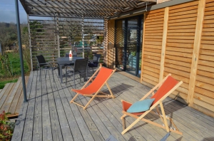 A Montastruc-de-Salies, à 13km de Salies-du-Salat, ici, vous vous reconnecterez avec la nature ! Avec une vue imprenable sur les Pyrénées, Cristina et Frédéric ont aménagé ce gîte en bois pour des séjours 'au vert'... Écologie et environnement sont au coeur de ce lieu ! Ils ont conçu cette maison bioclimatique en composant avec le climat, la nature environnante et les matériaux pour arriver à des performances énergétiques élevées. Cette maison très lumineuse possède également des qualités esthétiques indéniables ! Vous serez séduits par la chaleur des matériaux (bois, terre...). Le village d'Aspet se trouve à 11km (ne pas manquer son marché de plein vent, le samedi matin !) et Salies-du-Salat à 13km (casino, golf et thermes). Pour les amateurs de spéléologie, vous aurez accès à quelques kilomètres au plus grand réseau souterrain de France, Felix Trombe. Le site historique de Saint-Bertrand-de-Comminges n'est qu'à 33km, ainsi que la station de ski du Mourtis. Vous pourrez également randonner depuis le village.Au rez-de-chaussée : séjour ouvrant sur la terrasse (canapé convertible pour 2 personnes en 160cm), cuisine intégrée, salle d'eau avec WC. A l'étage : mezzanine ouverte sur le séjour (2 lits 1 personne en 80cm). Chauffage électrique d'appoint, suffisant pour cette maison éco-construite. Accès Internet Wifi mais stop-ondes possible. Jardin privatif en pente, terrasse surélevée en devant de porte, rampe d'accès.