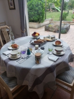 Nous vous accueillons dans cette charmante bâtisse située à 5 minutes à pied du centre de Jargeau et du parcours de la Loire à vélo. La chambre "Romantique" très spacieuse dispose d'une entrée indépendante ; vous y trouverez un lit 160 X 200 et un petit canapé pour le couchage d'une troisième personne ; une grande douche à l'italienne, une baignoire, un lavabo et un WC se situent dans la salle de bains attenante à la chambre. Pour la réservation de cette chambre, profitez de l'espace bien-être, spa (supplément 20€) peignoirs fournis. Une suite est proposée à l'étage, composée de 2 chambres doubles "La Douillette" (2 pers.) et "La Baroque" avec un couchage supplémentaire (3 pers.). Chacune des chambres est équipée d'un grand lavabo. Salle d'eau commune aux deux chambres, wc séparés.Nous privilégions les produits de toilette bio et pour le petit déjeuner, les produits locaux et bio. L'été, vous pourrez profiter de la piscine, du jardin et de la terrasse où chacun a son espace dédié.