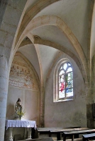 L'église comporte un double transept flamboyant, mais pas de chevet. Le choeur est aménagé dans la partie centrale de la deuXIe travée du transept. La nef, reconstruite plus tard, a gardé un portail en saillie du XIIIe siècle. A noter la présence d'une fresque (Cène) du XVIe siècle. Eglise inscrite sur l'Inventaire Supplémentaire des Monuments Historiques le 7 décembre 1925.