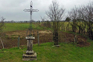 Au dessus d’un emmarchement s’élève un piédestal carré, puis une élégante croix ouvragée en métal.