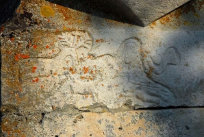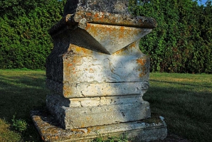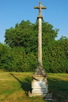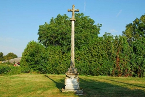 En bordure de route se dresse une grande croix de pierre, avec un piédestal qui comporte une gravure et une inscription. A l'avant, se remarque la vision de saint Hubert : le cerf entre les bois duquel se dresse une croix et le chasseur agenouillé, avec son cor de chasse et son chien. Sur la face de gauche figure cette inscription :A LA. DEVOTION DE. NICOLAS.HUOT. LAB. ET. DE. CATHERINE.VODUN. SA FEMME. POUR. S.HUBERT 1719A l’avant, se détache ensuite une console en forme de pyramide renversée. La table qui la couvre porte la date de 1817 ; sans doute la date de restauration de la croix après les dégradations de la Révolution. Plus haut, un chapiteau en forme de tablette surmonte la colonne. La croix du sommet, la seule à Choiseul de section cylindrique, est originale par la jolie décoration des extrémités de ses branches, une fleur à six pétales. A l'avant, un Christ est représenté dans un style assez naïf. Au revers, debout sur une console à godrons, une Vierge couronnée et vêtue d’un long manteau porte l’enfant Jésus sur le bras gauche. L’enfant est nu, le torse rigide.Si Choiseul compte actuellement quatre croix, trois à la périphérie du village et une au cimetière, une cinquième disparue après la dernière guerre, se trouvait au carrefour des routes de Breuvannes et Merrey.