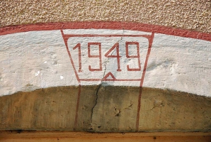 Maison haut-marnaise typique de nos villages, qu’on a pu construire dans nos campagnes depuis le XVIIIe siècle jusqu’à l’après-guerre comme en témoigne encore cette maison, datée de 1949, jumelée sur la gauche avec une autre habitation sans écurie et actuellement en ruines. Cette maison est traditionnellement à trois « chats » ou travées : habitation, grange et écurie, à une époque où l’abandon du cheval au profit de la mécanisation nécessitait pourtant de plus grands espaces agricoles, qu’on délocalisera à l’extérieur des villages à partir des années 1960-1970. Remarquons la pierre monolithique verticale qui forme le jambage commun entre la porte de l’habitation et la fenêtre aux linteaux cintrés, une caractéristique haut-marnaise qui oblige à construire un volet de fenêtre asymétrique tout à fait typique dans notre région. Un volet qui porte des découpes en trèfle, ce qui est assez peu courant dans nos campagnes. Conformément à la tradition, cette maison a été placée sous la protection d’un saint autrefois placé dans la niche au-dessus de la porte. Une niche aujourd’hui vide, qui conserve dans son fond le décor figuré et assez peu courant de « l’arbre de vie ». Quand on sait que « l’arbre de vie » et la croix du Christ sont des équivalents symboliques, on peut penser que c’est une représentation du Christ qui était placé dans cette niche, ce qui est très exceptionnel.Pas de visite : site privé visible uniquement de l'extérieur.