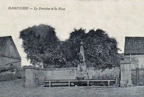Face au château, cette fontaine datant de 1821 était alimentée par des conduites en bois depuis la colline au Sud du village. Son eau se déversait dans un abreuvoir destiné à abreuver les chevaux.