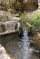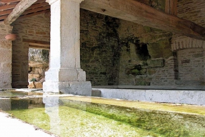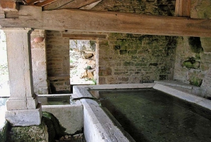 Adossé à la falaise, le bassin de lavage du lavoir est précédé de cinq auges.