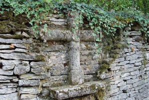 En redescendant dans le village, on remarquera à gauche et à mi-pente, une croix XVIIIe siècle de récupération curieusement incluse au milieu du XXe siècle dans le mur de soutènement, et un peu plus bas, à droite (au n°1), un corbeau représentant un ange sans tête tenant un écusson bûché, probable réemploi des pierres du château.