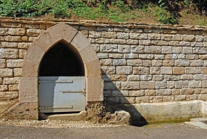 Cette fontaine est située sur la gauche de la rue de la Fontaine, elle est constituée d'un puits semi-fermé encastré dans un mur sous un massif arc ogival, avec ses deux petits abreuvoirs accolés en contrebas.